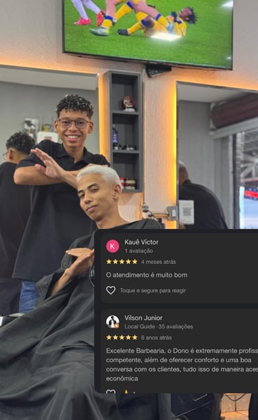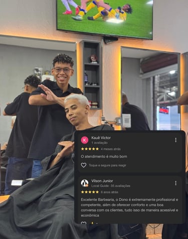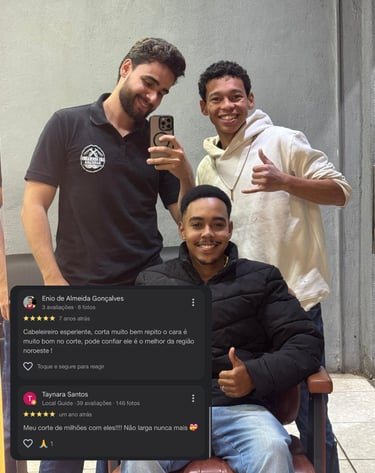 Com 10 anos de experiência desde 2016, construímos nossa reputação baseada em confiança, habilidade técnica e atenção aos detalhes. Cada corte, cada barba, cada acabamento reflete esse compromisso com a excelência.